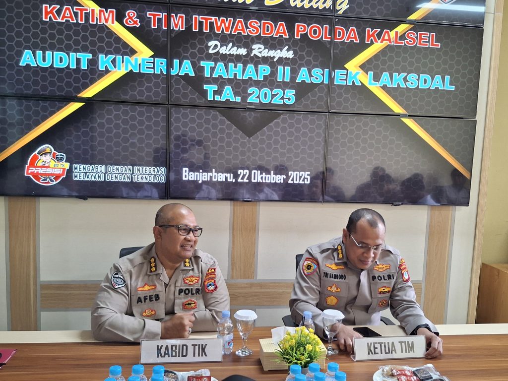 Dalam rangka pengawasan dan pengendalian kinerja Bid TIK Polda Kalsel, pada hari Rabu tanggal 22 Oktober pukul 13.30 s.d 16.30 Wita. di ruang rapat Bid TIK Polda Kalsel, Personel Bid TIK menerima Audit Kinerja Tahap II Aspek Laksdal TA. 2025 Itwasda Polda Kalsel.