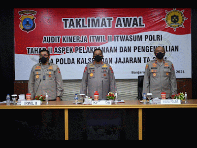 Dalam rangka menuju Polri yang Presisi di lingkungan Polda Kalsel, Itwil II Itwasum Polri melaksanakan audit kinerja Tahap II aspek pelaksanaan dan pengendalian pada Polda Kalsel dan jajaran TA. 2021.