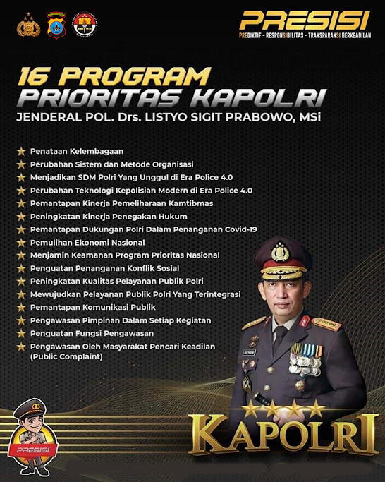 SUPERVISI PELANTIKAN KAPOLRI 5 years ago AdminTIK Presiden RI Ir. H. Joko Widodo telah resmi melantik Jenderal Polisi Drs. Listyo Sigit Prabowo, M.Si., sebagai Kapolri di Istana Negara pada Rabu tanggal 27 Januari 2021 pukul 10.00 WIB. Continue Reading Previous PAMATWIL DAN PAM PILKADA 2020Next MAGANG SISWA/SISWI SMK More Stories SUPERVISI KABID TIK MEMIMPIN SUPERVISI FUNGSI TIK JJRN POLDA KALSEL TA. 2025 4 months ago AdminTIK SUPERVISI AUDIT KINERJA ITWASDA TAHAP II TA. 2024 DI BID TIK 12 months ago AdminTIK SUPERVISI SUPERVISI BID TIK POLDA KALSEL TAHAP II TA. 2024 1 year ago AdminTIK
