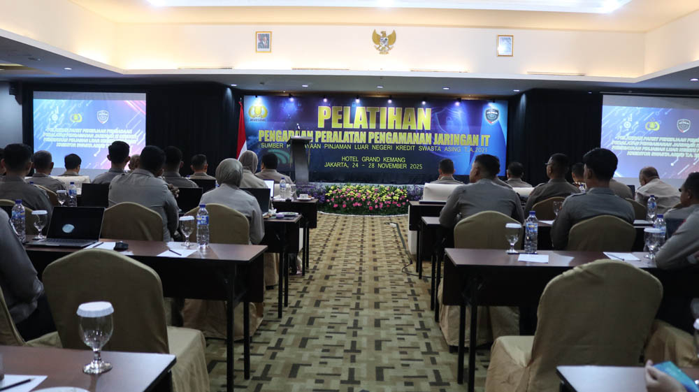 Dalam rangka Pelatihan Pengadaan Pengamanan Jaringan IT Sumber Pembiayaan Pinjaman Luar Negeri Kredit Swasta Asing T.A. 2021 pada hari Senin tanggal 24 November 2025 pukul 08.00 WIB s.d. 28 November 2025 bertempat di Ballroom Hotel Grand Kemang Jakarta Selatan.