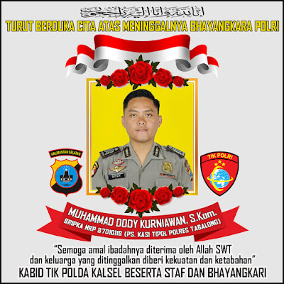BERITA SELAMAT JALAN BHAYANGKARA POLRI 5 years ago AdminTIK Meninggal dunia pada hari Selasa 2 Maret 2021 pukul 10:30 Wita di RS. Ulin Banjarmasin. Continue Reading Previous PENDISTRIBUSIAN BANSOS DARI KABID TIKNext KABID TIK NARASUMBER GIAT BID HUMAS More Stories BERITA RAPAT RAPAT KOORDINASI COMMAND CENTER POLDA KALSEL DI BALAIKOTA BANJARBARU 1 week ago AdminTIK BERITA DIRGAHARU KORPRI KE-54 TAHUN 2025 3 weeks ago AdminTIK BERITA SELAMAT JALAN SISWA PKL SMKN 4 BANJARMASIN 1 month ago AdminTIK